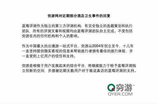 值得注意的是,大家在对这些酒店的行为表示愤怒的同时,也有人提出质疑:此次测评的专业性和独立性如何保证?蓝莓评测背后的穷游网是否也参与了此次测评?测评人员如何保证两天连续预定同一个房?这些问题接踵而至。