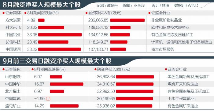 进入9月以来,“有色金属”依然是投资者抱有最大热情的板块,融资净买入额在前3个交易日已高达17.24亿元,计算机与钢铁分别以8.65亿、8.64亿位居第2-3名。