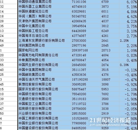 很多大型央企收入增速为负数,尤其以银行为多,比如农行、工行、建行、中行等。另外,很多央企收入增长慢。