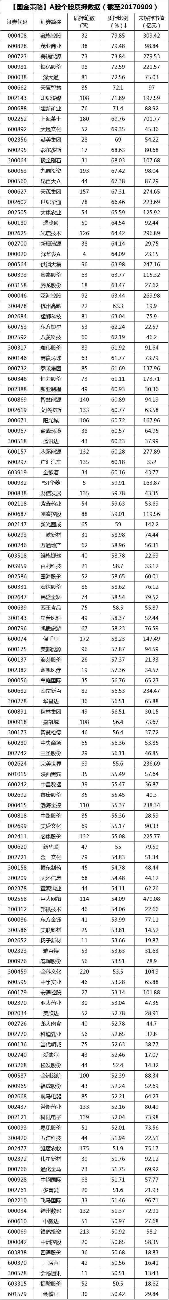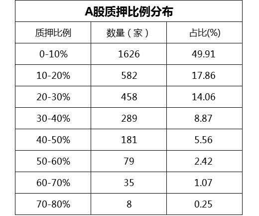 个股方面,A股中质押比例超过50%的个股数量有122家,超过30%的有593家。
