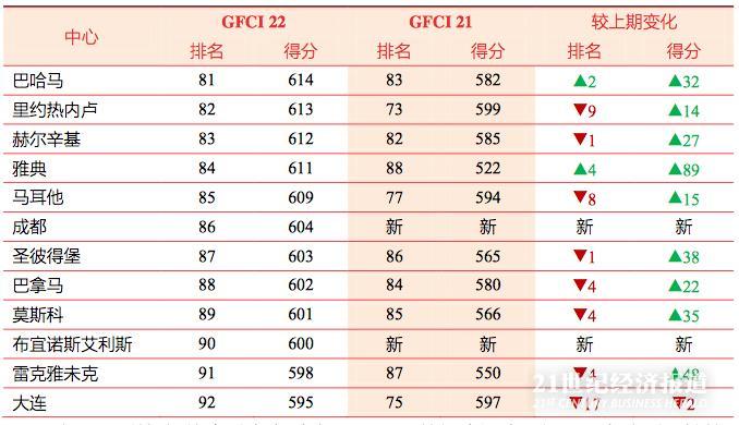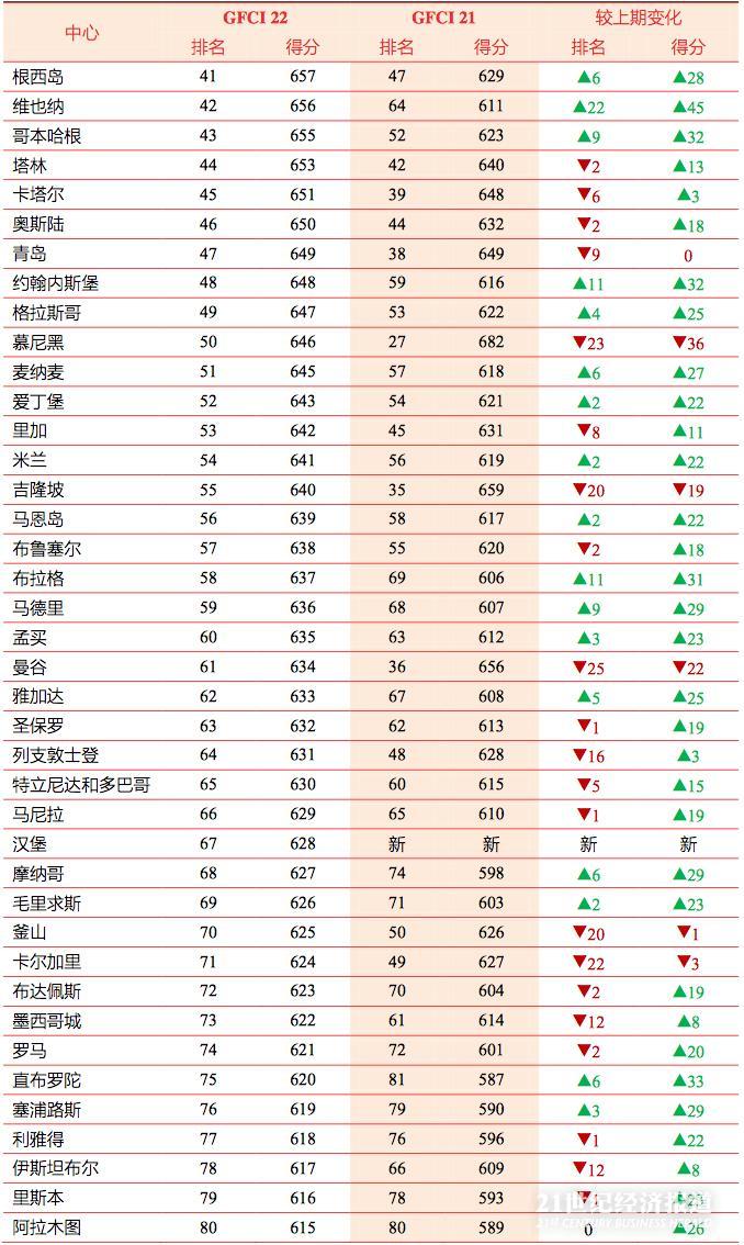 另附GFCI 22 综合竞争力排名和得分榜单: