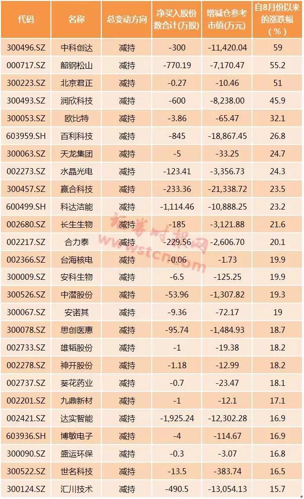 时报君统计数据发现,上述披露已经发生的减持股票行为中有26只个股自8月份以来涨幅超过15%,其中中科创达、韶钢松山、北京君正涨幅超过50%,润欣科技、欧比特涨幅超过30%。