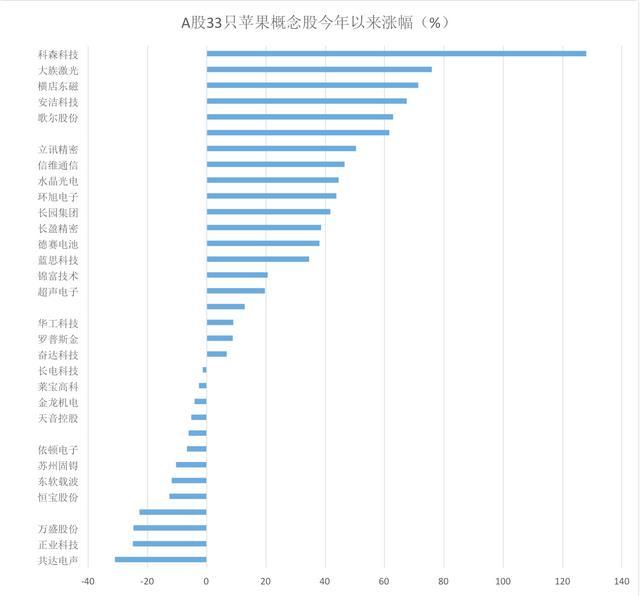 与此同时,由于市场预期今年内苹果新品将供不应求,从而提升市场对明年销量的预期,A股33只苹果概念股也将在集体跳水之后有望迎来长期看涨,相关产业链增幅将很有可能贯穿全年。