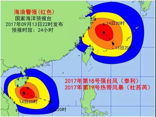 3、中央气象台13日18时继续发布台风橙色预警。今年第19号台风“杜苏芮”将于14日夜间到15日上午掠过海南南部海面,今年第18号台风“泰利”已于13日下午加强为强台风级,将于14日夜间开始转向偏北方向移动,沿浙江东部近海北上。