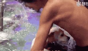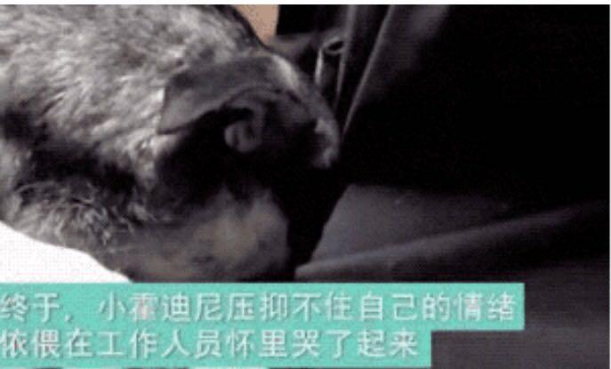 狗狗忍不住依偎在工作人员怀里哭起来。