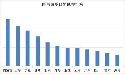 从携程的订单看,国内游学的热门目的地前十名是:内蒙古、宁夏、贵州、甘肃、青海、新疆、海南、上海、北京、深圳。从年龄看,主要集中在8-15岁。分为孩子独立参团和家长带孩子参团两种。
