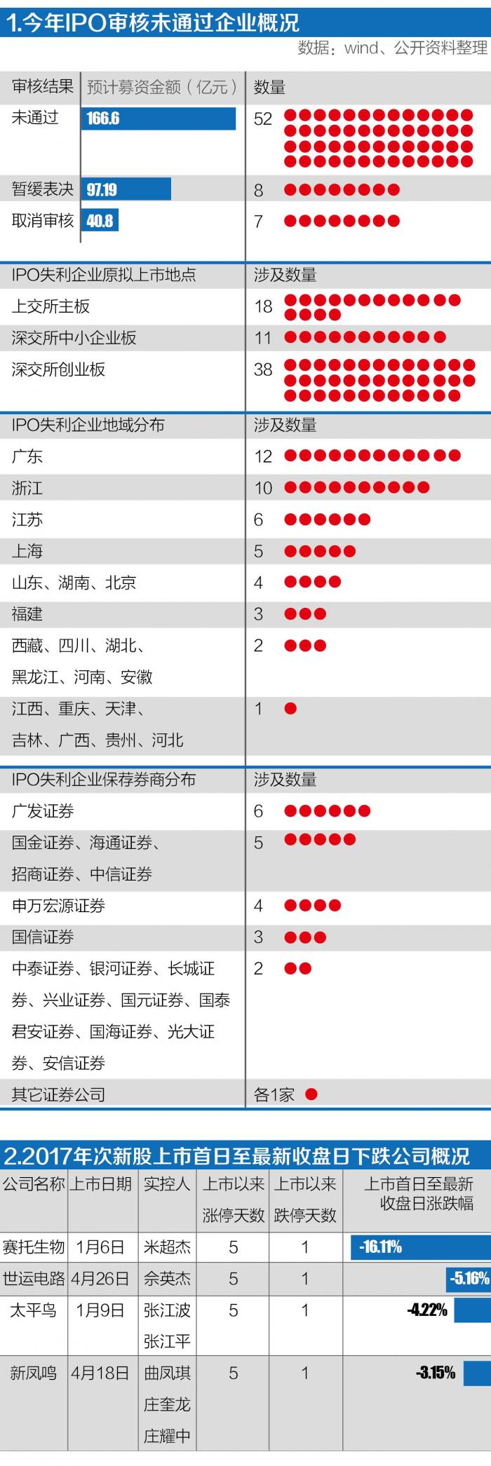 Wind资讯数据显示,截至9月15日,两市IPO遭到否决的首发企业数量,达到52家,若再加上暂缓表决的8家(剔除最终上市成功的)和取消审核的7家,则在距离IPO成功临门一脚时最终失败的企业数量,达到了67家。