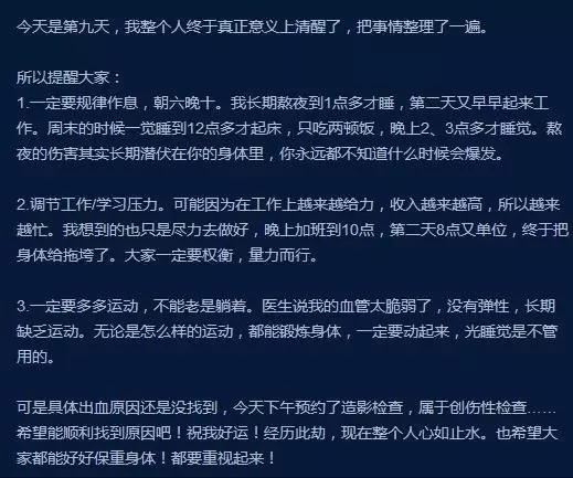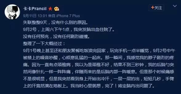 前阵子微博有个叫卡卡的年轻网友脑内忽然出血,引发不少人的关注。
