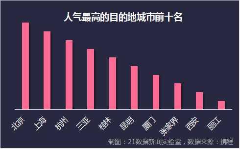 人气最高的目的地城市前三名是:北京、上海、杭州。