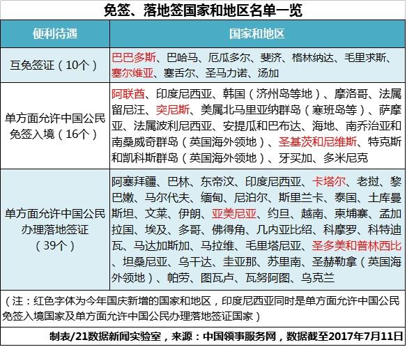 《2017年国庆出境游签证报告》预测,今年国庆海外旅游的中国游客规模将超过600万人次。为了争夺中国游客,全球各国纷纷放宽签证条件、缩短办理时间。今年国庆中国护照的含金量大幅提升,是中国公民免签、落地签国家和地区数量最多的黄金周,对持普通护照的中国公民免签、落地签国家和地区达64个,相比去年国庆的56个增加了8个。一些中国游客最青睐的国家都可以说走就走。