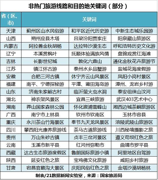 不想人挤人,除了错峰出行,其实还可以到非热门目的地走走,也许会有意外的收获。部分省(市、区)旅游主管部门根据历年同期假日旅游情况,整理了一份非热门旅游线路和目的地关键词,以供参考。