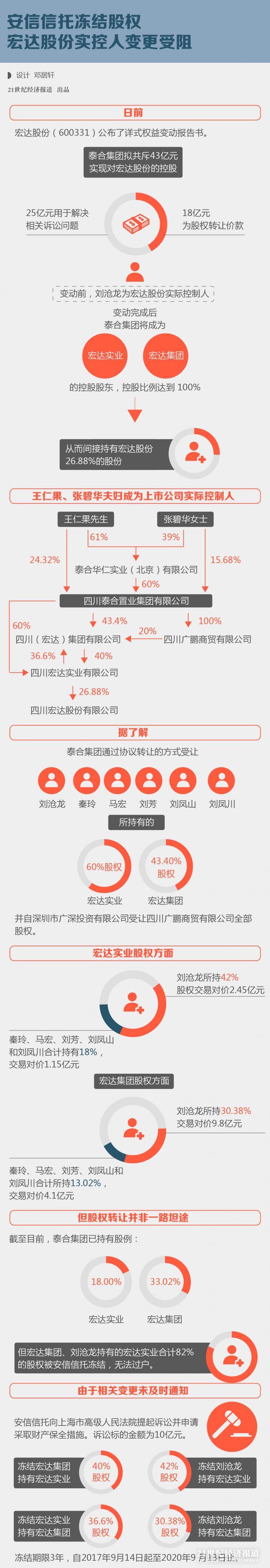 据了解,泰合集团通过协议转让的方式受让刘沧龙、秦玲、马宏、刘芳、刘凤山以及刘凤川所持有的宏达实业60%股权和宏达集团 43.40%股权,并自深圳市广深投资有限公司受让四川广鹏商贸有限公司全部股权。