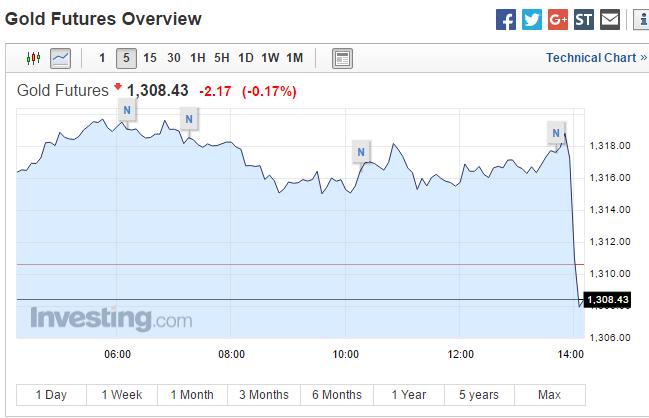 美联储公布FOMC货币政策决议声明后,黄金跳水,美国10年期国债收益率上扬,美股应声下跌。