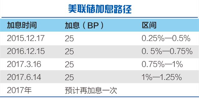 美联储预计2017年还将加息一次,预计2018年将加息三次,2019年加息两次,2020年将加息一次。