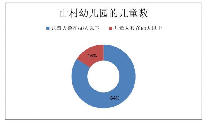 山村幼儿园的校舍利用农村闲置资源,特别是“撤点并校”后留下的闲置村小。山村幼儿园网上报的数据表明,山村幼儿园儿童的平均数量为31人,儿童人数在60人以下的占到84.33% ,65. 92%的山村幼儿园附设在小学校内,65. 13%的山村幼儿园有供餐条件,31. 93%的山村幼儿园可以在幼儿园午睡。