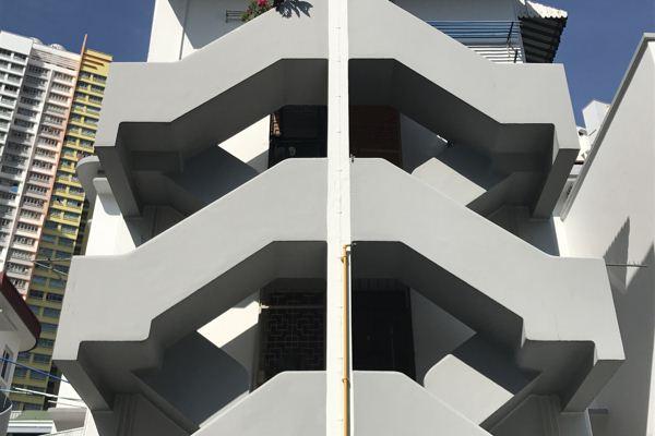 除了组屋之外,邻近中峇鲁的牛车水还有许多充满怀旧风情的“店屋”,顾名思义,这些二三层的小楼,是上层可住人,下层可经营的商铺。这些迷人的成排单元小屋源自殖民时代,散发着浓郁的亚欧文化融合气息,可以想象这样一幅巧妙的画面:中式的贴片中楣和蝠翼状通风口,搭配以马来式的木制回纹饰、法式的窗户、葡萄牙式的百叶窗和古希腊科林斯柱式壁柱。现在所见的店屋大多装饰陶土瓦、法式双百叶窗,内部有庭院和楼梯间,也有采光和通风用的天窗,为幽暗的室内空间带去光明和新鲜空气。店屋最让人印象深刻的是当地人称之为“五脚基”的存在,意指店铺住宅临街骑楼下的走廊。廊宽经过了法规规定,统一为五英尺,这一特色是为了保护行人免受日晒雨淋。虽然店屋里面属于私人领地,但是五脚基却属于公共区域,这一想法由斯坦福莱佛士爵士(Sir Stamford Raffles)于1822年在新加坡首个城镇规划中提出。