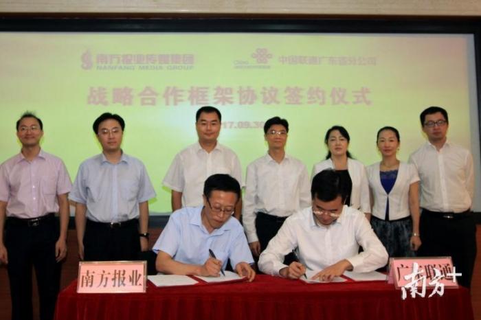 9月30日上午,南方报业传媒集团与中国联合网络通信有限公司广东省分公司在广州签署战略合作框架协议。双方将通过此次战略合作,促进双方加快实现在发展方式转变、增长动能升级和运营模式创新方面的战略目标,联合推动产业互联网的发展。