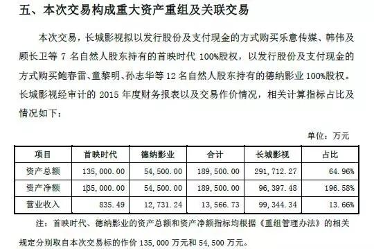长城影视将如何调整重组方案,尚不清楚。不过,每经影视记者注意到,若新的重组方案中,首映时代100%股权仍维持13.5亿元的估值,那么即便以长城影视2016年度财务报表相关指标计算,收购首映时代100%股权仍构成重大资产重组,若依然涉及发行股份购买资产,那么仍需要通过证监会审核。
