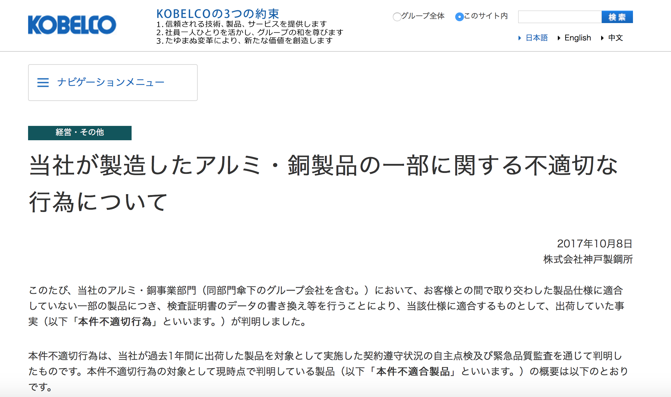 (神钢官网声明 具体见:http://www.kobelco.co.jp/releases/1197805_15541.html)
