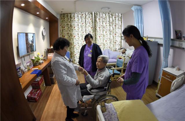 北京市石景山区八角街道养老中心的医护人员在了解老人的健康情况(2016年11月22日摄)。新华社记者 李欣 摄