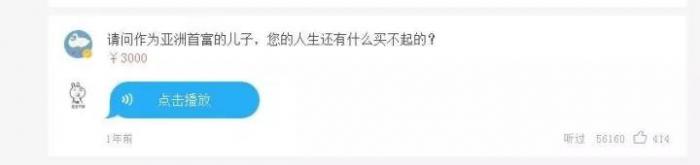 如目前受众较广的语音回答应用“分答”,其运作模式是B 对 A 提问,同时付出酬劳;而 C 能够听 A 给出的回答,但每次需要给出 1 块钱,然后 A 和 B 对半分。“分答”一出就火遍朋友圈,但真正让分答瞬间“爆燃”是王思聪的加入,他曾经一天回答了32 个问题,总共花费不到1小时就获得了超过 22 万元的回报,而很多向王思聪提问的人同样赚的盆满钵满。其中最火的一条问题“请问作为亚洲首富的儿子,您的人生还有什么买不起的?”,被听了 56160次,提问者净赚了两万多元。