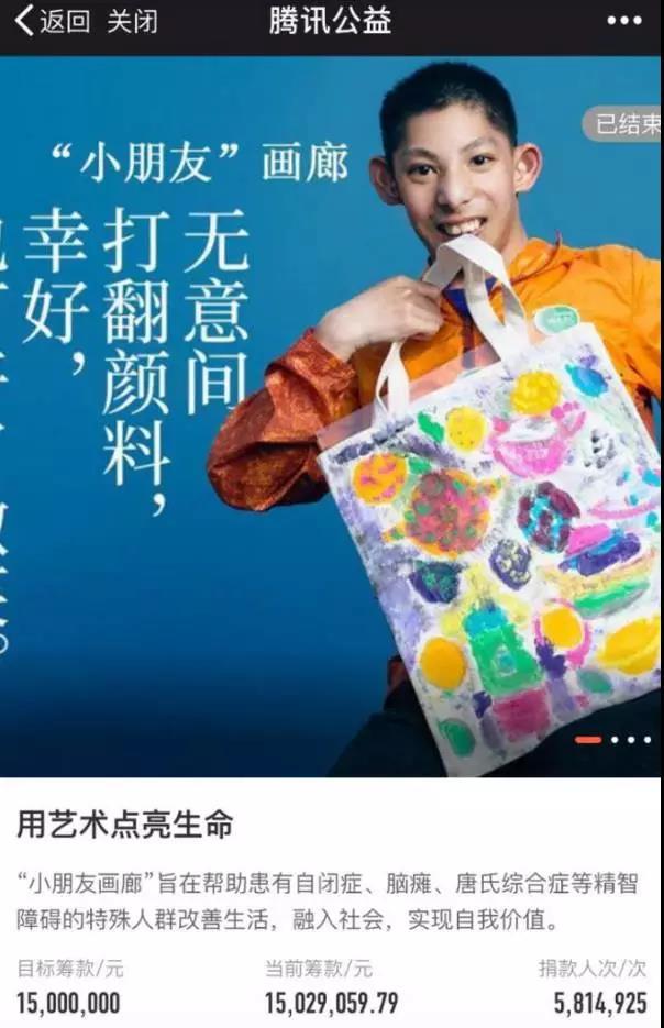 不要小看1元钱的力量,该项目中总共有36幅原创画作,当天下午就达成了该项目的目标筹款金额1500万元,捐款人次超过581万。