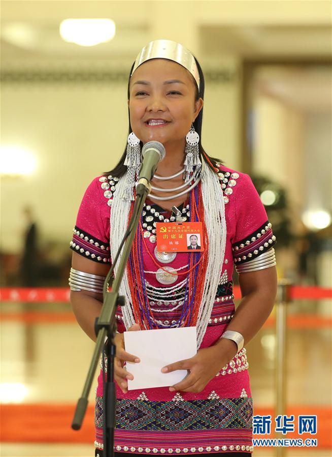 10月18日,中国共产党第十九次全国代表大会在北京人民大会堂开幕。这是开幕会前,杨娜代表接受采访。 新华社记者 陈建力 摄