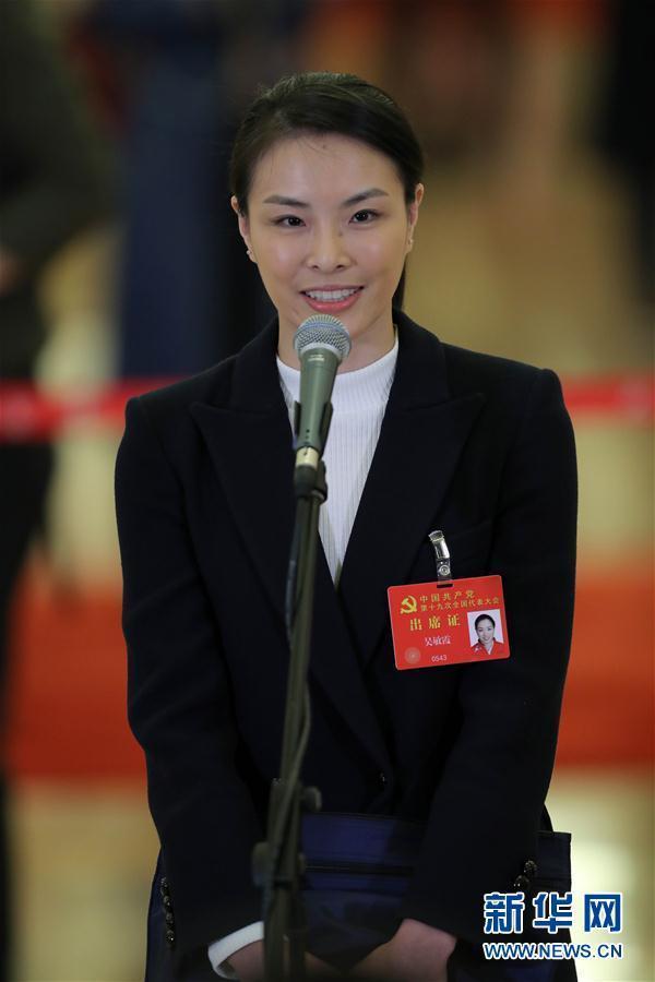 10月18日,中国共产党第十九次全国代表大会在北京人民大会堂开幕。这是开幕会前,吴敏霞代表接受采访。 新华社记者 殷刚 摄