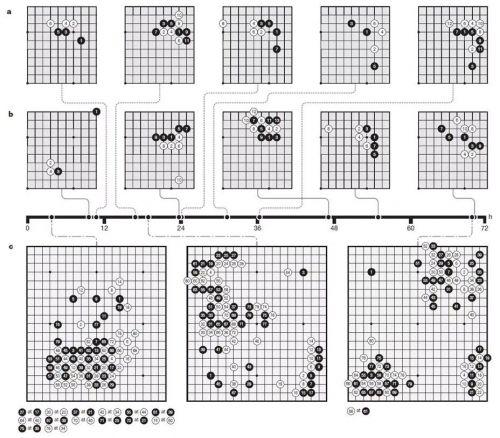 而AlphaGoZero在“独立”上更进一步,在训练的过程中,它是自我对弈。从训练图上可以看出,由于一开始并不熟悉围棋,对弈双方的水平都很弱,但是随着时间的推进,在短短3天互相博弈490万局后,越来越强,实现了围棋水平的突破。