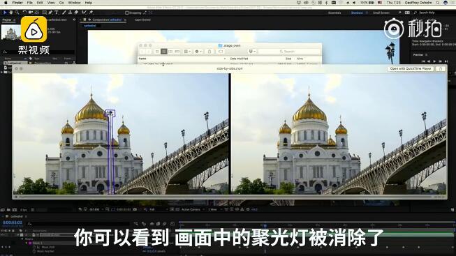 Adobe的研究团队在近日举行的Adobe Max 2017大会上,由工程师演示了一项名为Cloak的新功能。该功能类似于Photoshop中的内容填充功能。新功能可以让视频画面中的一些物体消失掉。比如让画面中遮挡教堂的聚光灯完美消失,山谷中行走的两人消失等。