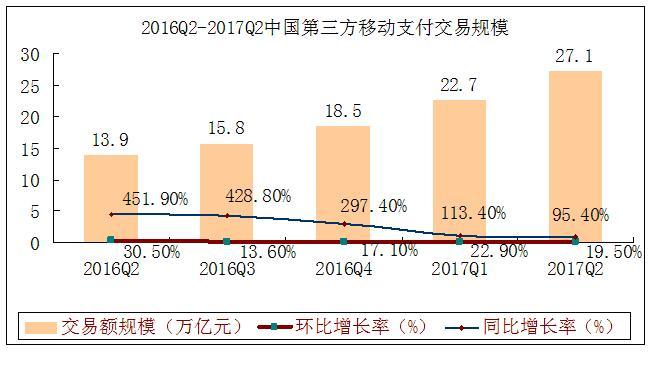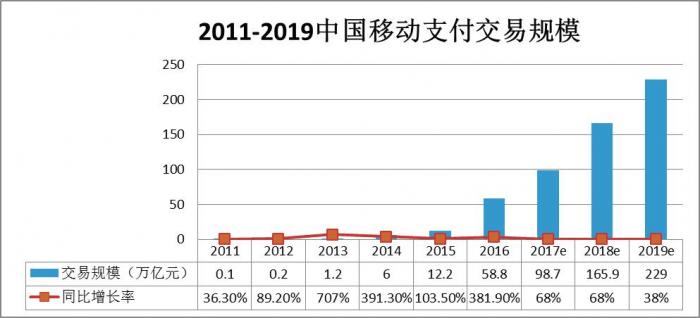 从2011年0.1万亿的交易规模,直至2016年58.8万亿的交易规模,5年间增长588倍,这一数据仍呈上升趋势。
