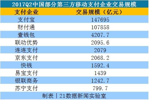 最近,艾瑞咨询公布了2017年2季度第三方支付移动支付市场份额数据,支付宝和财付通市场份额一升一降。