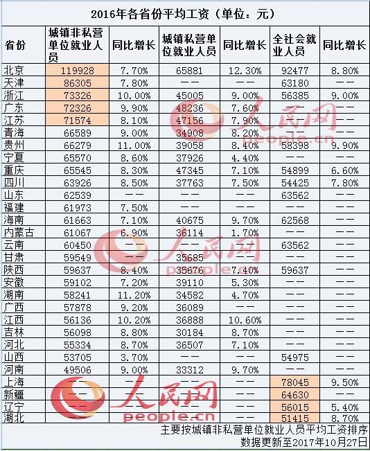 2016年平均工资出炉:北京人均12万居首 15省份月薪超5000