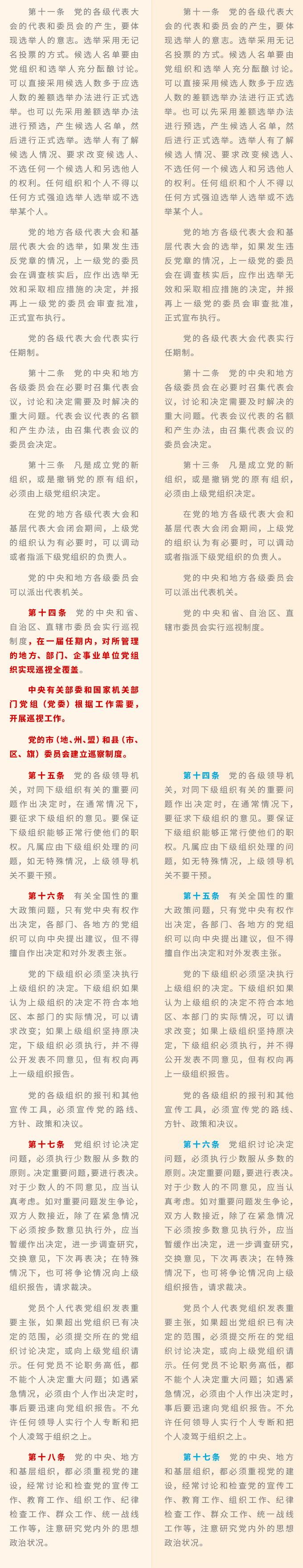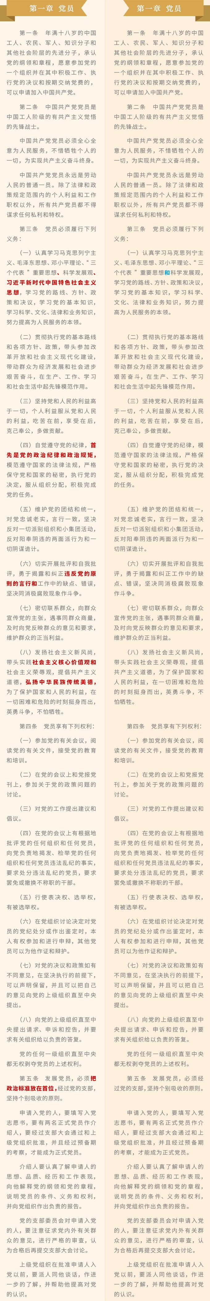 一图读懂:《中国共产党章程》修改对比一览表