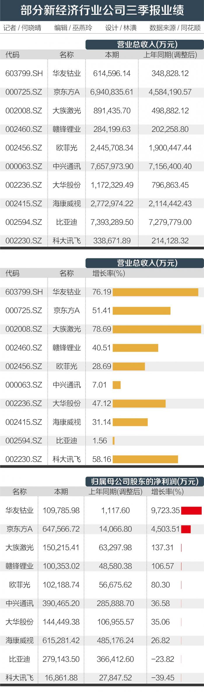 随着上市公司三季报披露落下帷幕,作为新经济代表的海康威视(002415.SZ)和京东方A(000725.SZ)两家科技公司以其靓丽的业绩表现成功跻身A股市值前50强。