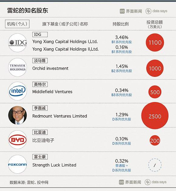 自1998年成立以来,雷蛇已经历过多轮融资,且股东阵容十分豪华,IDG、淡马锡、富士康和李嘉诚等知名投资机构(或个人)都出现在其上市前的股东名单中。