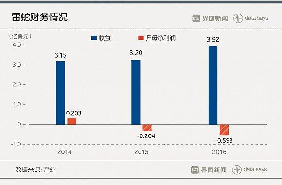 雷蛇于2014年录得利润2030万美元,于2015年及2016年则分别录得亏损2036万美元及5933万美元。雷蛇表示,未来两年仍会持续亏损。不断增长的营销和研发费用或是雷蛇亏损的主要原因之一。