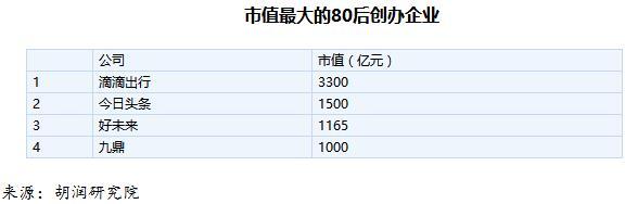 胡润表示:“应该还有蛮多是腾讯系、华为等大企业里的80后,也有资格上榜,只不过隐藏在员工中,所以我们暂时看不到。还有一些等待融资的企业仍待发掘,因为其具体估值和股份情况暂时不清楚。”