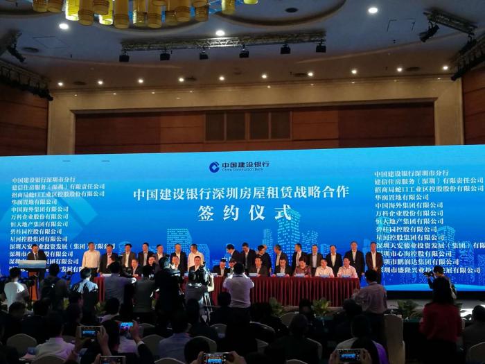 11月3日,建设银行深圳分行与招商、华润、万科、恒大、中海、碧桂园、星河等11家房地产公司,以及比亚迪、方大集团、研祥智能、兆驰等11家企事业单位举行住房租赁战略合作签约仪式,推出5481套包括“CCB建融家园”在内的长租房源,并发布个人住房租赁贷款产品。这标志着建设银行正式进军深圳住房租赁市场。