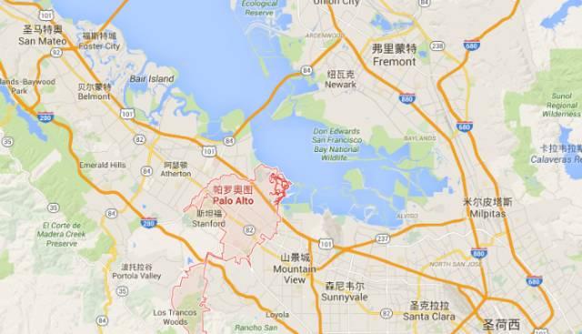 从硅谷的帕罗奥托出发,到Facebook公司总部和Google公司总部都只需要十几分钟。