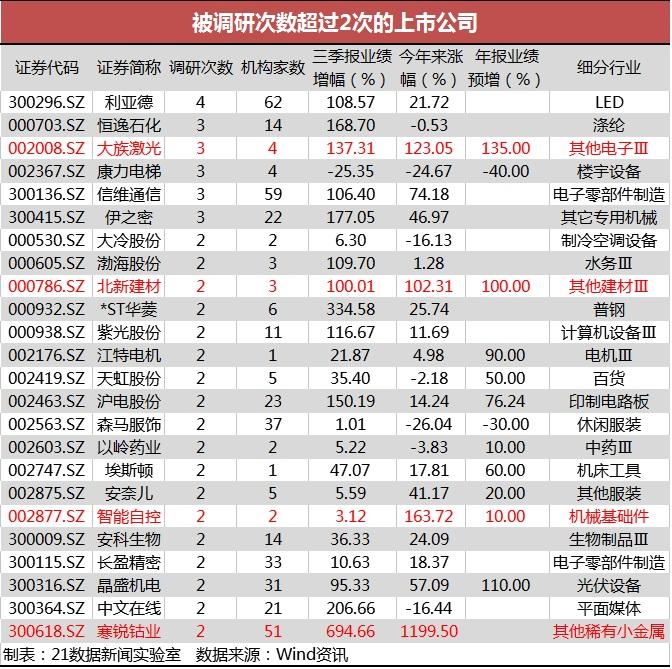 据21数据新闻实验室统计,10月30日-11月5日当周,机构共计调研155家上市公司,仍然集中在中小创,中小板75家,创业板51家,主板29家。