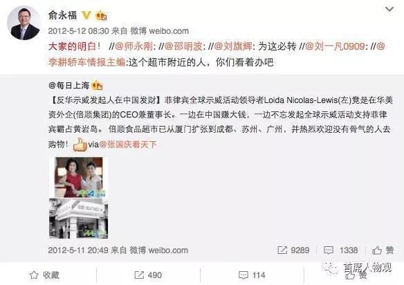 除了发布UC相关内容,给好朋友雷军捧场,他也会关心时事政治,比如朝鲜、菲律宾反华问题;
