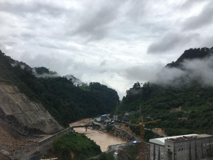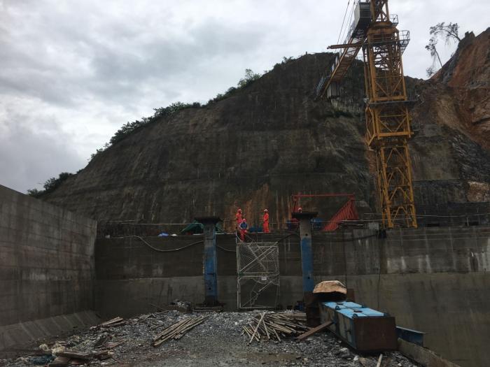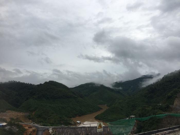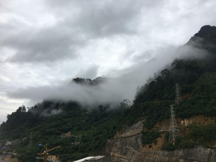 水电站项目位于密林深处,巨大的黄色吊车后面,是山腰缭绕的薄雾,犹如仙境。