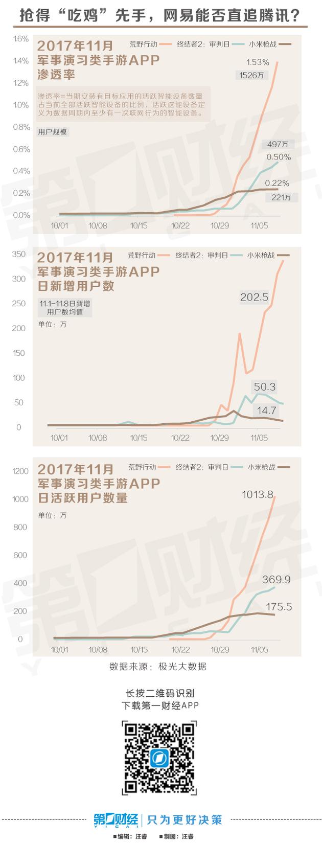 不难看出,网易迫切想要在游戏领域扳回一局。而继王者荣耀后又一现象级的“吃鸡”游戏成为了腾讯网易正面对决的主战场。