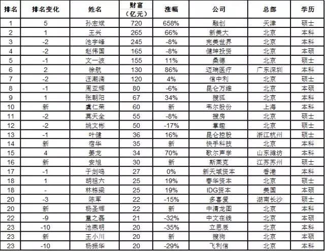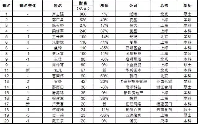 复旦最能创造财富的校友前15名中有1位新人:华兴资本的包凡。