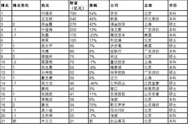 胡润百富榜上共有56%的企业家出自“社会大学”,快递大王王卫成为“社大”首富