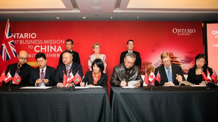 11月24日,加拿大安大略省省长凯瑟琳·韦恩(Kathleen Wynne)率代表团抵京,开启对中国的第三次商务访问。在当日举行的签约仪式上,中加双方签署了金额近6亿加元的新协议。