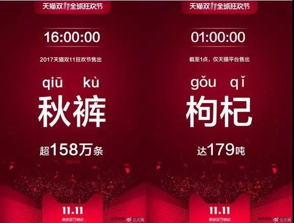 相信不少人还记得,在两周前的双11购物狂欢节上,有两件商品销量惊人:一个叫“秋裤”,一个叫“枸杞”。