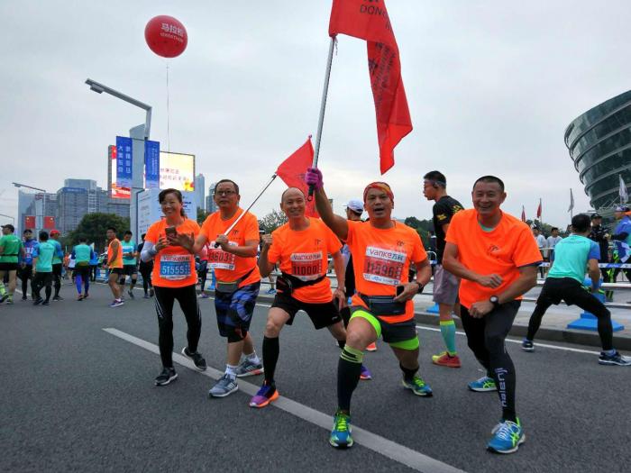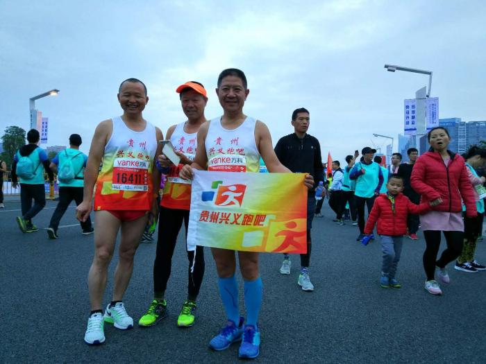 现场也出现了不少50后和60后跑者。贵州兴义跑吧三名参与全程马拉松的跑者今年分别60岁、62岁和55岁,(从左至右),这次东莞马拉松是他们今年跑过的第八场马拉松赛事,此前,这三位跑友最好成绩分别是4小时3分33秒、4小时5分60秒和4小时29分钟。
