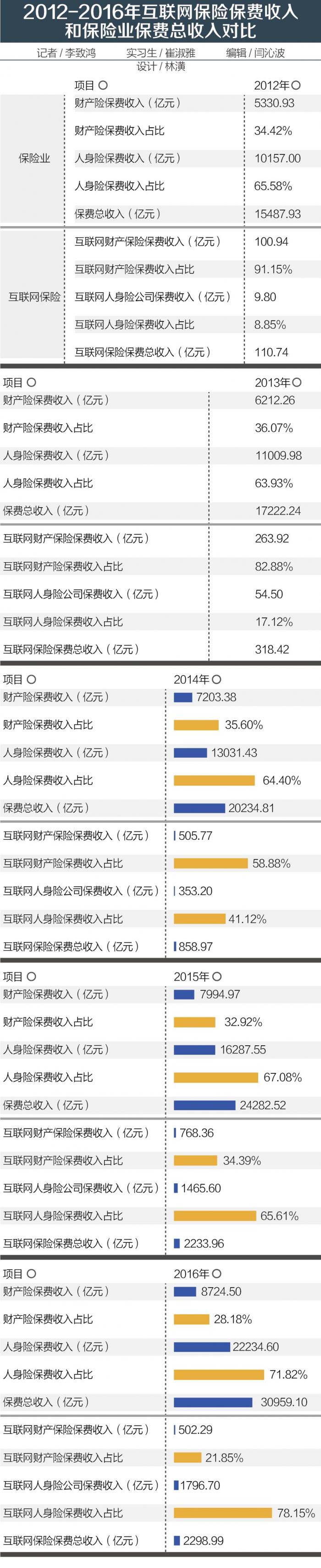 日前,中国保险行业协会发布的《中国互联网保险行业发展报告2017》(下称“《报告》”)显示,近5年,互联网保险保费收入持续增长,但是增速放缓。其中,2016年是重要节点,我国互联网保险当年保费收入2299亿元,同比增长65亿元,同比增幅3%,但相较于上年160%增幅,增速明显放缓。